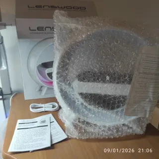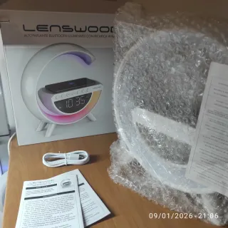 Lampada da comodino con altoparlante e multifunzione a forma di G. Con funzioni da cassa a sveglia, luce RGB, ricarica rapida wireless integrata poggiando il telefono,se compatibile. Luce RGB, molto bella, con diverse modalità di funzionamento e colori e in più con effetti che ruotano multicolore. Funzionamento anche con bluetooth e quindi associabile a telefono e riprodurre musica. Sul retro ingresso micro SD, cavo jack da 3,5 e usb-typeC per alimentazione. In dotazione cavo usb, no alimentatore. Funzionamento anche cavo, ricaricabile. Presa su Amazon e Nuova. Vendo per inutilizzo.