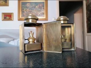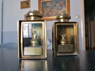 Coppia di antiche lanterne ad olio in ottone mai usate, sono in perfette condizioni
