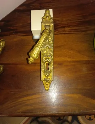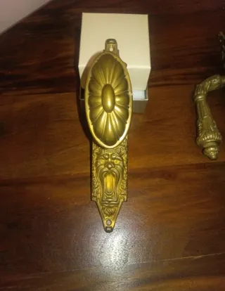 N°14 maniglie in ottone pieno, originali anno 1933, con decorazione a testa di leone. - Adatte a finestre e porte finestre - Si vendono anche singolarmente Il prezzo trattabile e di 30€ a maniglia.