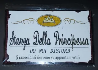 Vendo il cartello in metallo in foto. Mai appeso, come nuovo. Misure 20,5 cm x 13 cm.