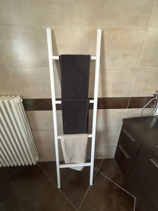 Scaletta porta asciugamani per il bagno, dal design moderno e funzionale. - Struttura in legno. - smaltata colore bianco opaco