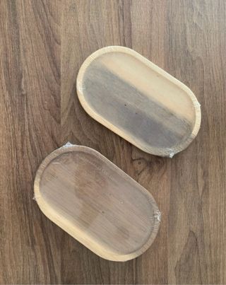 Set di due portaoggetti ovali in legno, perfetti per organizzare piccoli oggetti. - Materiale: legno - Colore: beige e marrone - Forma: ovale
