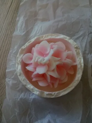 Candela a forma di fiore di loto rosa al profumo di pesca bianca. Nuova in confezione originale. Come foto