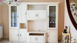 Elegante mobile da salotto color avorio, perfetto per organizzare il tuo spazio. - Design moderno e funzionale. - Finitura in legno e vetro.