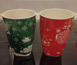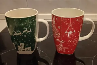 Set di due tazze MUG natalizie, perfette per le feste. -Adatte microonde e lavastoviglie - Tazza verde con renne e fiocchi di neve. - Tazza rossa con decorazioni natalizie. - Ottime condizioni