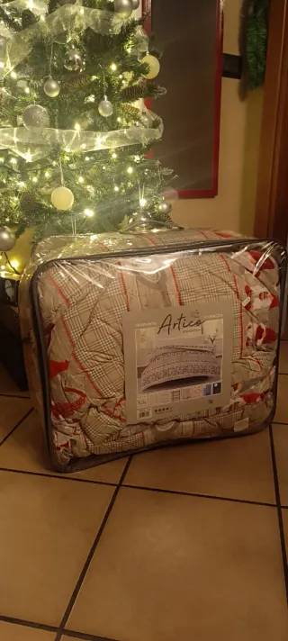 Coperta Artica per letto ad una piazza e mezza, acquistata per errore. - Misure: 210x250 - Fantasia a quadri beige con dettagli rossi. - Materiale: poliestere.