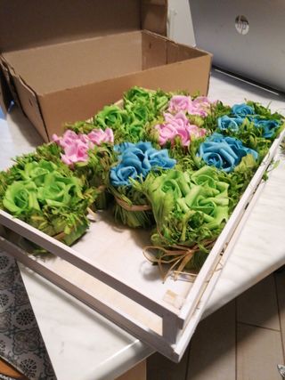 roselline 3rosa 4 verde e 4 celesti con la cassetta