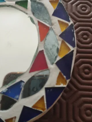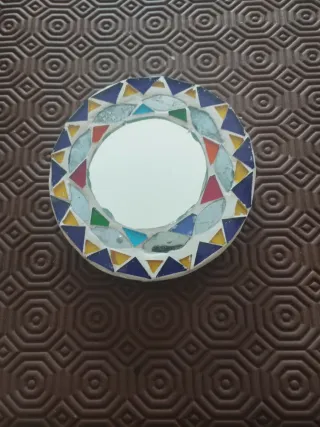 Delizioso specchietto decorato con mosaico. - Cornice colorata con tessere di vetro. - Design unico e vivace - diametro cm 10