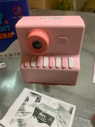 Macchina fotografica istantanea termica Nuova, Instant Camera in colore rosa. Include scatola originale, cavo USB, manuale utente, tracolla e rotoli di carta per stampa. - Design divertente e colorato. - Ideale per creare ricordi istantanei.
