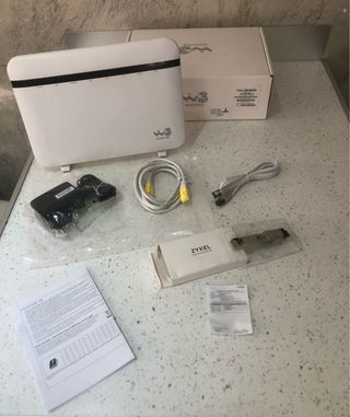 Modem Zyxel W3 Windtre perfettamente funzionante completo di chiavetta fibra e completo di accessori. - Alimentatore - Cavi di rete - Manuale di istruzioni