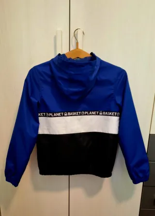 Giacca leggera United Colors of Benetton per bambina. - Colore blu con dettagli bianchi e neri. - Stampa PLANET BASKET sulla fascia bianca. - Cappuccio integrato. - Chiusura con zip frontale bianca. - Tasche laterali con zip.