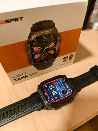 Smartwatch Kospet Tank M4 con design robusto e finitura in acciaio. - Resistente e durevole. - Stile militare. Con schermo OLED , GPS, altimetro e barometro. Solo provato, con scatola e accessori