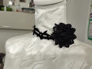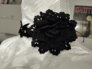 Collana girocollo in pizzo nero con un fiore centrale. - Realizzata in pizzo. - Dettaglio floreale. I prezzi sono trattabili