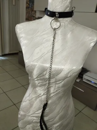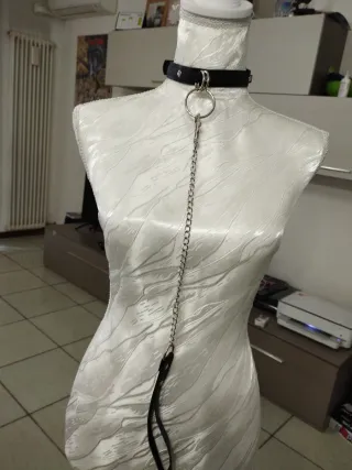 Choker da donna con catena e guinzaglio. - Choker in ecopelle. - Dettagli in metallo argentato. I prezzi sono trattabili