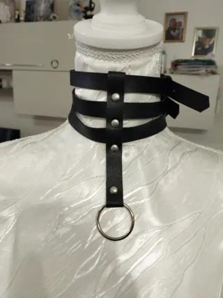 Choker in stile Punk Gotico, un accessorio audace per completare il tuo look. - Design a collare con anello centrale. - Materiale effetto pelle. - Dettagli in metallo argentato. I prezzi sono trattabili