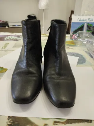 Stivaletti alla caviglia con tacco basso. - Materiale: pelle effetto martellato. - Chiusura con zip laterale. - Punta squadrata. I prezzi sono trattabili