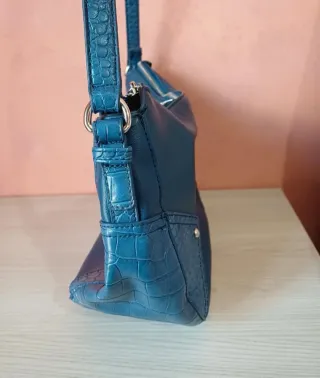Borsa elegante in pelle blu. - Dettagli in ecopelle effetto coccodrillo. - Chiusura con cerniera. - Tracolla regolabile.