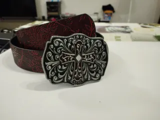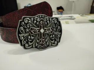 Cintura in stile Western Cowboy, adatta a tutti. - Fibbia decorata con motivo floreale e croce. - Cinturino con motivo floreale in rilievo. I prezzi sono trattabili Lunghezza 90 cm