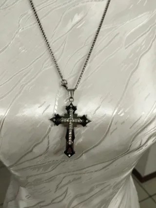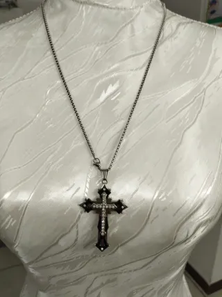 Collana con pendente a forma di croce, adatta a uno stile Gotico o Punk Rock. - Design unisex. - Dettagli in argento e nero. I prezzi sono trattabili