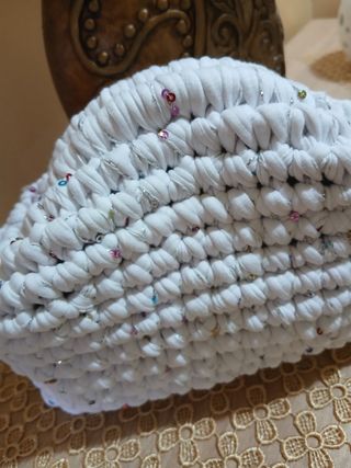 Clutch realizzata a mano all'uncinetto, perfetta per aggiungere un tocco unico al tuo outfit. - Design artigianale. - Filato di alta qualità.