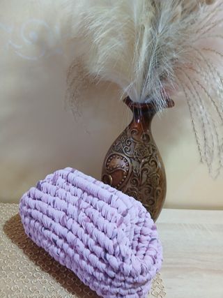 Elegante pochette realizzata a mano, perfetta per completare il tuo look. - Design unico e artigianale. - Tonalità viola vivace.