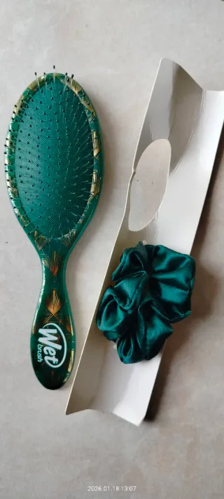 Spazzola per capelli Wet Brush con un elegante design verde e dettagli dorati. Include un elastico per capelli coordinato. - Spazzola per capelli Wet Brush - Elastico per capelli coordinato