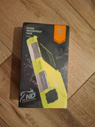 Custodia subacquea Shellbox, seconda generazione. Ideale per proteggere il tuo dispositivo durante le immersioni. - Design impermeabile. - Colore giallo brillante. - Chiusure argentate.