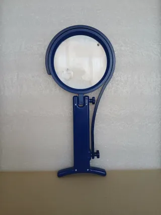 Lente di ingrandimento universale pet lavori manuali. - supporto stabile e braccio regolabile. Ideale per leggere o per lavori di precisione. - Colore: blu - Materiale: plastica e metallo -ingrandimento principale diametro cm 10,5 integrato da piccola lente con ulteriore ingrandimento.