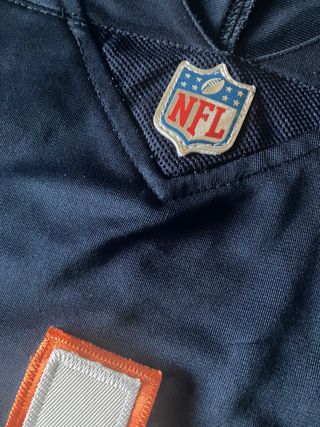 Maglia da football americano dei Chicago Bears, giocatore Fields ruolo quarterback - Colore blu navy con dettagli arancioni. - Numeri e nomi cuciti - Logo NFL sul colletto. - Taglia XL. maglia come nuova, unico difetto su lettera h come da foto