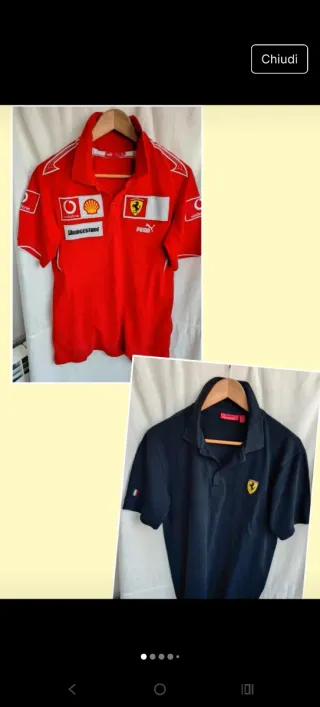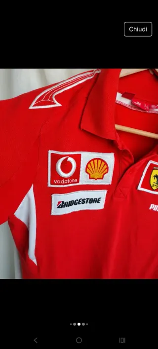 Bellissima polo ufficiale Ferrari, colore rosso,perfetta, manica raglan Torace 51 lunghezza 68 - Logo Scuderia Ferrari sul petto. - Sponsor Shell e Bridgestone. - Logo Puma. - Omaggio incluso polo blù notte,stessa vestibilità,con qualche imperfezione Come da foto,ma ancora portabilissima