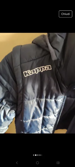Piumino Kappa blu con maniche staccabili, taglia 14 anni, ottime condizioni,caldo - Logo Kappa sul petto. - È stato applicato logo triangolare sulla manica per piccolo strappo - Cappuccio integrato staccabile