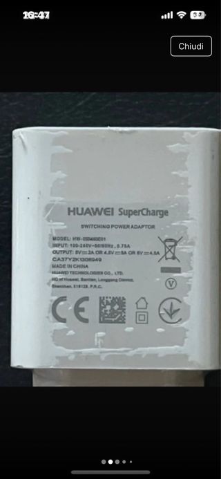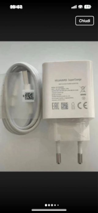 Caricabatterie originale Huawei Super Charge, completo di cavo. - Tecnologia Super Charge per una ricarica rapida. - Design compatto e pratico. - Cavo incluso per la connessione.