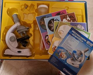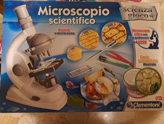 Set Microscopio Scientifico Clementoni per esplorare il microcosmo. Ideale per i piccoli scienziati curiosi. - Microscopio ottico con ingrandimenti fino a 600X. - Include carte scientifiche illustrate. - Adatto per bambini dai 9 anni in su.