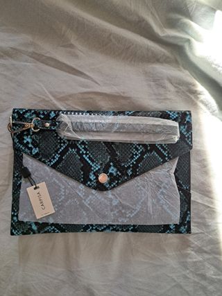 Pochette Carpisa effetto pitone blu e nero