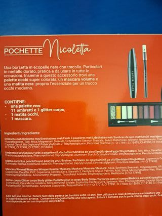 Set di pochette Collezione Pochette Make-Up di Royal Beauty, ideale per portare con te il tuo trucco. - Pochette nera con dettagli dorati. - Palette di ombretti con diverse tonalità. - Mascara nero. - Matita per occhi.