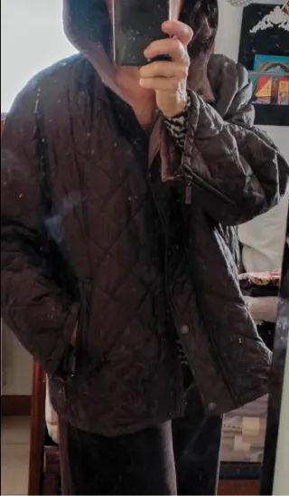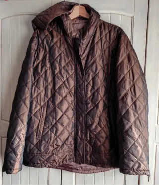 Giaccone trapuntato da donna, un capo versatile e alla moda,del brand Miroglio non ricordo se Elena Miro o Fiorella Rubino, colore bronzo cangiante,fondo arrotondato leggermente più lungo dietro Ideale per climi più miti o da indossare con sotto giacche Spalle 48 seno 64 lungh 70)74 - Design trapuntato con motivo a rombi. - Cappuccio integrato. - Chiusura frontale con bottoni a pressione. - Tasche laterali pratiche.