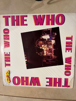 Vinile The Who Superstar della band The Who. - Copertina con design a righe diagonali. - Immagine interna di un concerto. - Logo Super Star presente sulla copertina.