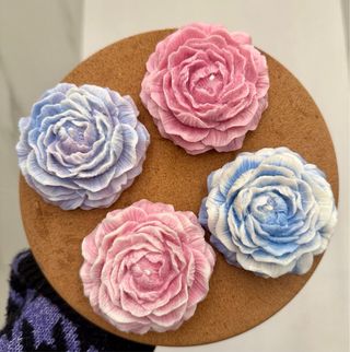 Candela profumata a forma di peonia In mille colori💜 cera di soia e coloranti naturali Perfetta come regalo per amiche, colleghe e parenti e adatto ad essere un pensiero di Natale! Consegnata adagiata su tulle, all’interno della scatolina chiusa con fiocco 🎀 scrivimi SENZA impegno☺️ NB. Eventuali Striature bianche, molto più visibili sui colori scuri, che possono essere visibili sulla cera di soia sono indice della buona qualità della cera (cerca “frosting” su internet)😊