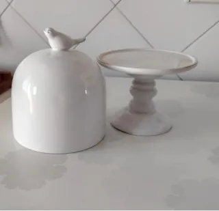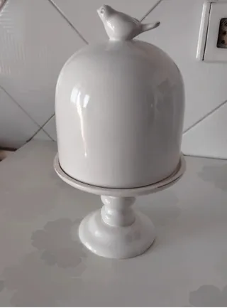 Elegante alzatina per dolci con cupola decorata da un simpatico uccellino,per dolcetti o piccola torta Mai utilizzata Ceramica effetto shabby H.23 diametro interno per torta 13.5 - Design raffinato. - Base stabile per presentare torte e dessert.
