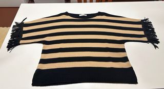 Maglia a righe beige/nera con frange tg.M