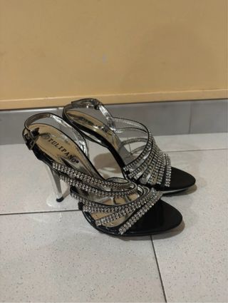 Eleganti scarpe con tacco alto, perfette per aggiungere un tocco di glamour. - Design con cinturino alla caviglia. - Decorazioni scintillanti. - Tacco trasparente.