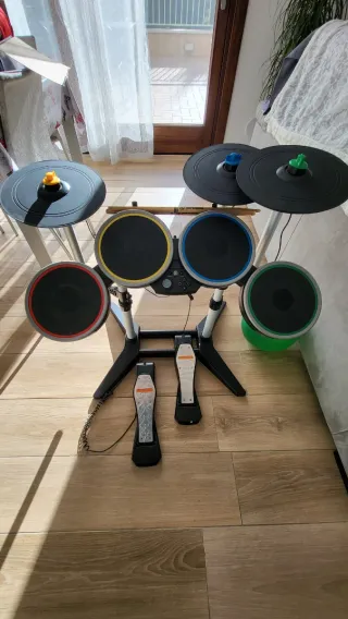 Vendo batteria Rockband 3 Madcatz versione pro completa di piatti, molto difficile da trovare, perchè commercializzata solo negli USA. La batteria è perfettamente funzionante e non ha difetti, si connette senza fili a playstation 3,4 e 5(testata) tramite ricevitore wireless che si collega alla porta usb della console. La batteria funziona tramite 3 batteria AA. Compresa scatola originale, doppio pedale grancassa e bacchette in legno Rockband. Un vero oggetto da collezione, tenuto veramente bene.