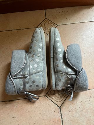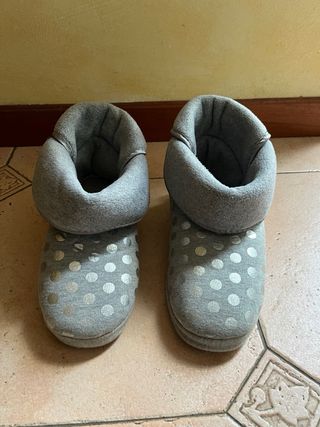 Comode pantofole Yamamay con un simpatico motivo a pois. - Colore grigio con pois argento. - Modello stivaletto. - Fiocco decorativo sul retro.