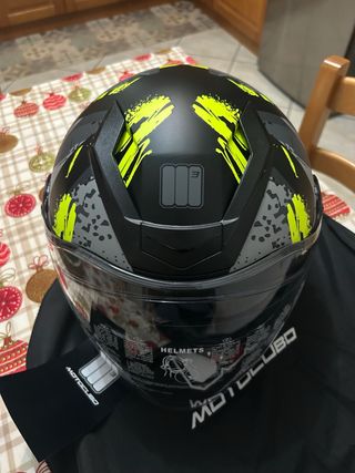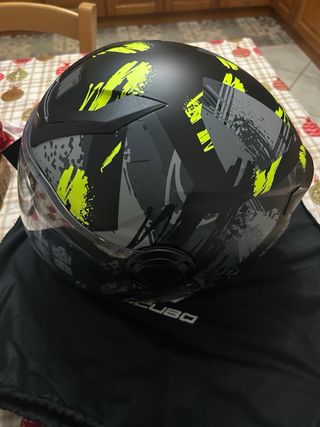 Casco Motocubo nero con grafiche gialle e grigie. Casco mai utilizzato, taglia XL. Lo spedisco direttamente nella scatola originale. - Visiera trasparente. - Occhiali da sole integrati. - nuovo con cartellino