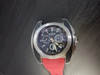 Orologio Breil Milano Quartz funzionante Manca un pezzo di cinturino Vetro scheggiato - Quadrante nero. - Dettagli rossi sul cinturino.