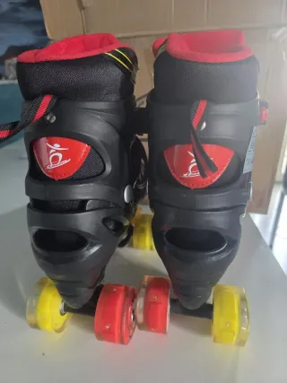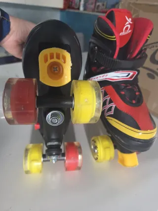Scarpe da pattinaggio a rotelle con design colorato. - Ruote rosse e gialle. - Chiusura con velcro e lacci. - Protezione gialla sul tallone.