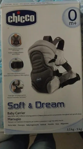 Marsupio Chicco Soft & Dream per neonati da 0 mesi in su. Offre 3 posizioni di trasporto per il massimo comfort e protezione. - Protezione posteriore imbottita. - Sistema di regolazione della larghezza. - Posizione sdraiata Dormibene.