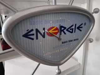 Orologio da parete con design moderno del brand Energie. Anni 90 Sixty Chieti Abruzzo. Funzionante a batteria Rarissimo - Logo Energie basic blue jeans sul quadrante. - Cornice in metallo argentato. - Stile unico e distintivo.