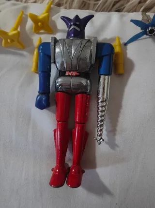 Robot da collezione della linea Shogun Warriors di Mattel. - Testa viola con visiera. - Corpo argentato con dettagli rossi e blu. - Braccia e gambe snodabili. - Accessori inclusi.