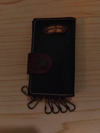Portachiavi in pelle con chiusura a bottone. - Design bicolore nero e marrone. - Logo El Bandolero sul davanti. - Dotato di 6 ganci per chiavi.
